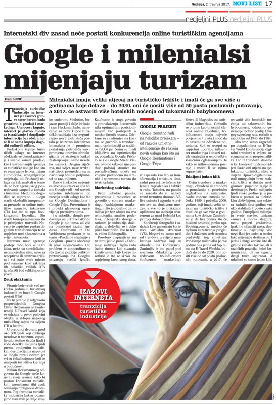 Natjecanje za nove kupce turističkih sadržaja i za „regrutiranje“ novih potrošača postalo je izuzetno intenzivno. Intenzivna je i promjena ponašanja potrošača kao i promjena u primjeni novih tehnologija pa strategije katkad zastarijevaju u samo nekoliko mjeseci. Drugim riječima, naš svijet, naša poduzeća i naši životi preuređeni su na način koji često u potpunosti ne razumijemo. Utjecajni potpredsjednik odsjeka Engineering, Shopping and Travel u Googleu, dr. Oliver Heckmann, na primjeru svog odsjeka dao je uvid u ono što će se na tržištu turizma i ugostiteljstva dešavati „sutra“.